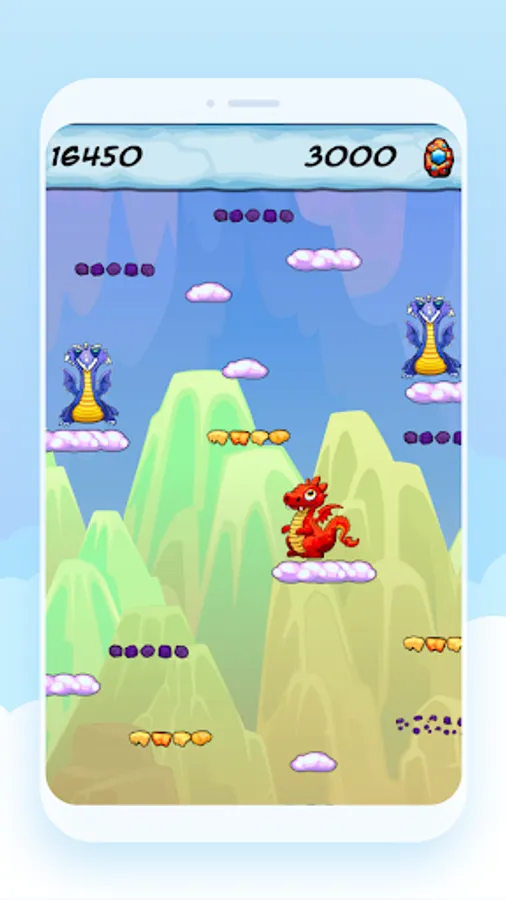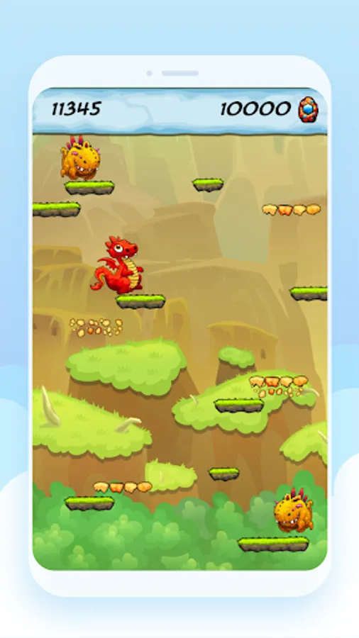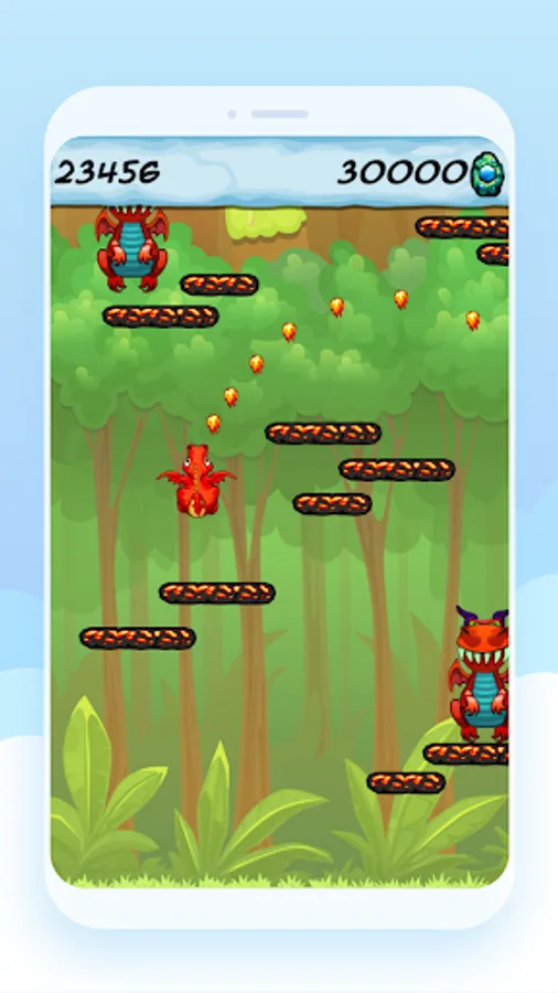 Dragon Adventure gameplay consists of the single-minded pursuit of reaching top of the jungle in which our brave dragon finds himself by jumping onto the ledges throughout.