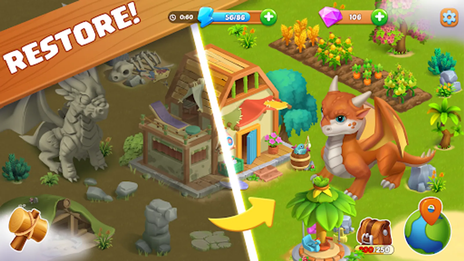 Dragons Farm Adventure is a casual energy exploring game where you find and merge dragons to discover new ones. Build a home for yourself on a tropical island and craft various products to fulfill different orders, while joining Mia on her adventures to new islands.