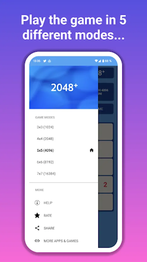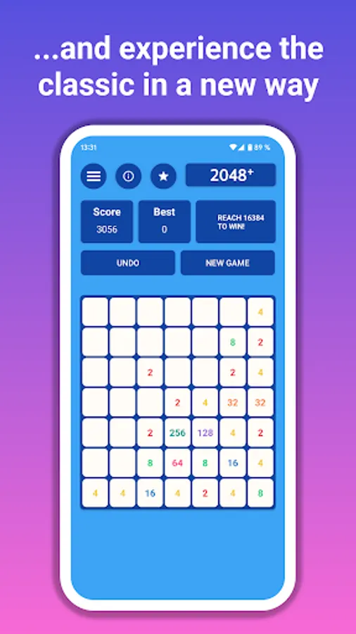 2048+ - A new way to play the classic game, created by Gabriele Cirulli (https://play2048.co/) - choose between different modes with different dimensions