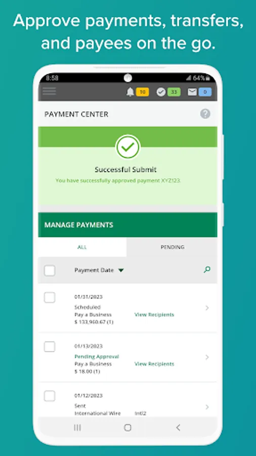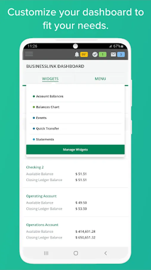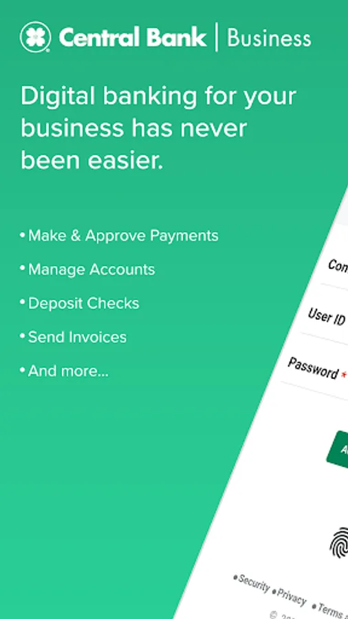 Digital banking for your business has never been easier. Use your mobile device to handle a full range of your business banking needs including account management, funds transfer, approvals, business bill and loan payments, and mobile check deposit.