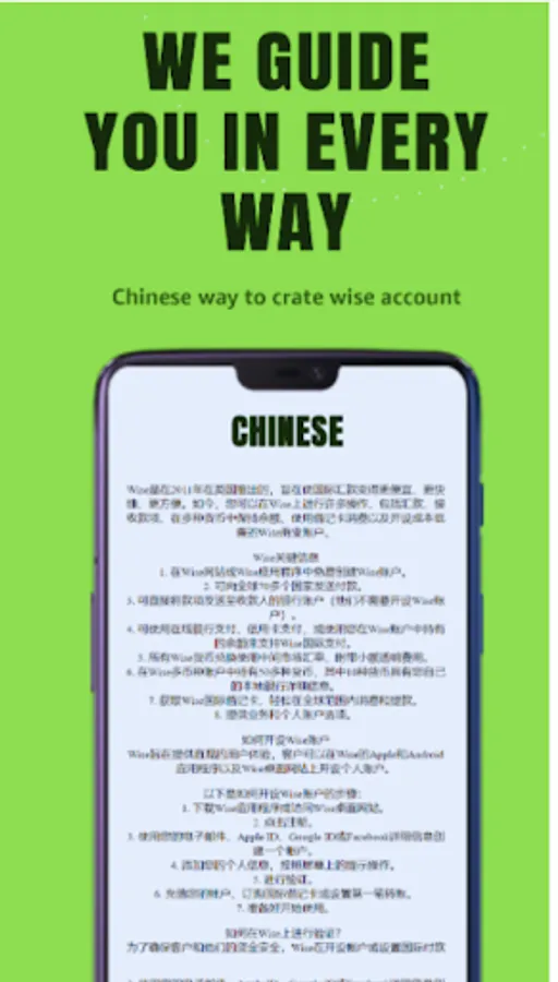 For those who don't know what Wise is, Wise is a bank account. This app is not for Wise. This app only tells you how to create Wise account. Most people do not know how to use Wise account. And these apps are not from Wise. This app is only for Education purposes and you can't create Wise account in this app.