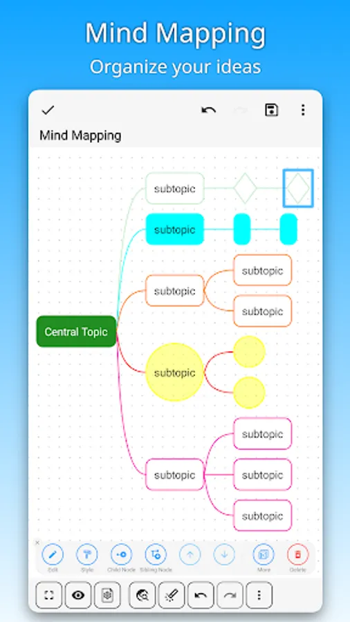 • Mind Mapping help you quickly record ideas and organize knowledge. You can freely choose styles, borders, colors and styles.