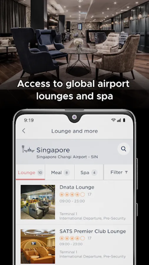 • Top up lounge visits with in-app purchase