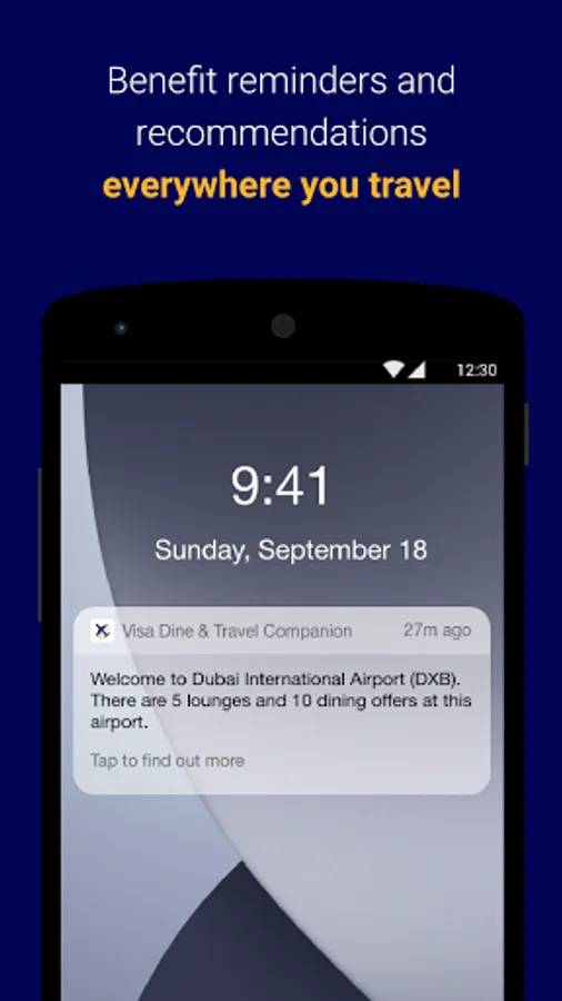 Receive recommendations and benefit reminders for your nearest airport everywhere you travel, via push notifications.
