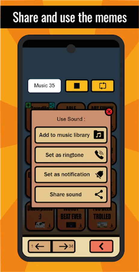 -Add Memes to your music library, set as ringtone, set as notification or share via many networks! 🔗