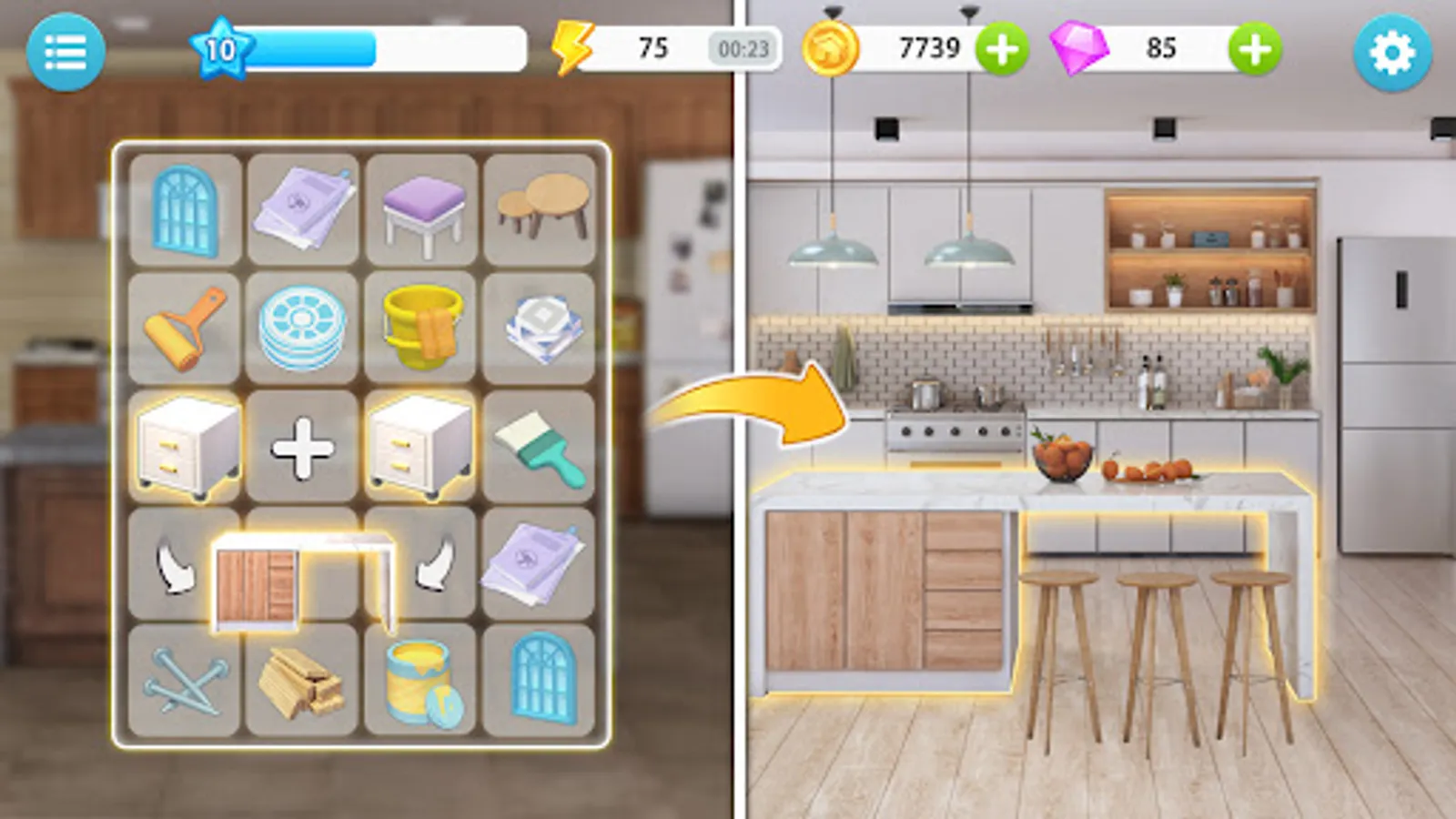 Renovate your home and decorate it to your dreamy house💖 ! Merge the fragments and components to the different types of equipment, use your intelligence🤓 to create the fashion furniture and decoration and then your old home was finished makeover!
