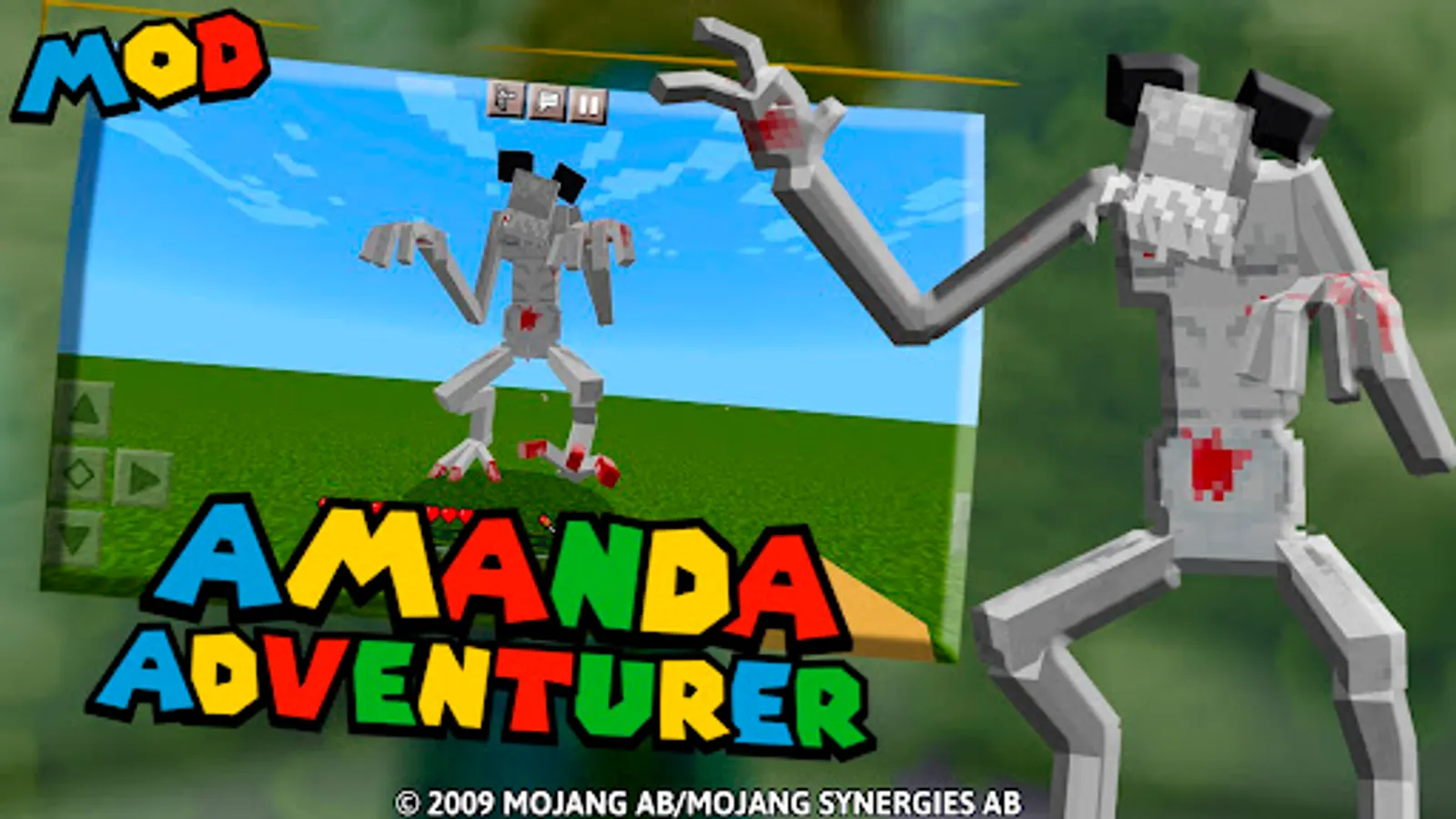 This addon is based on a game called Adventurer Amanda. This mod adds 1 character, and that is amanda in monster form. Amanda - Amanda is a child who has a "best friend" a sheep and can transform into a terrible monster. This monster is really tall; it only attacks the player, villager and iron golem.