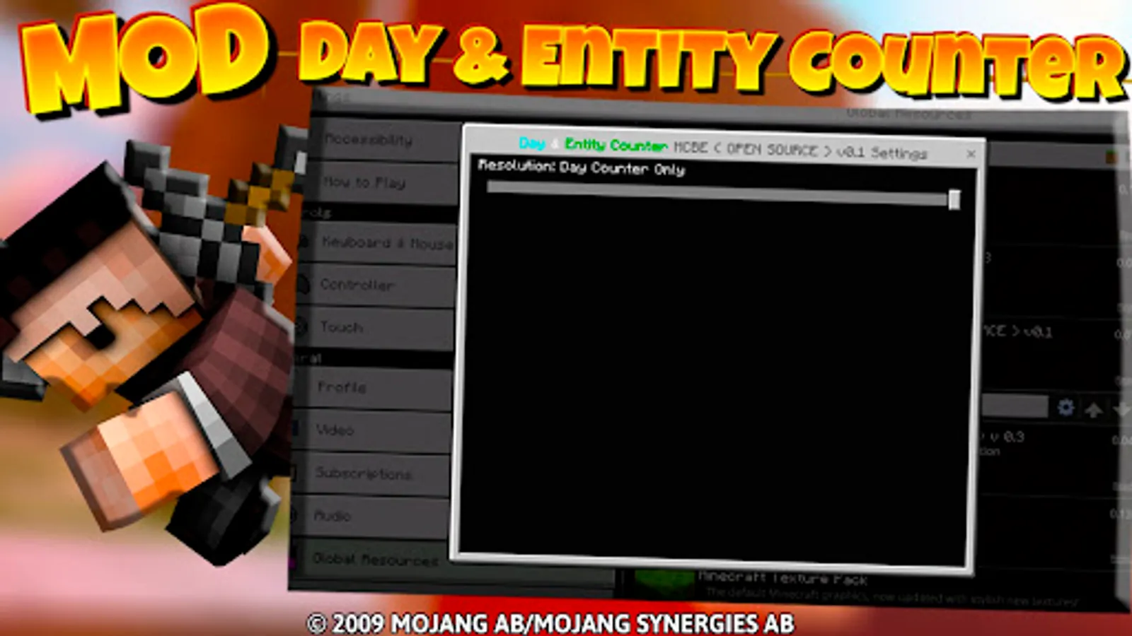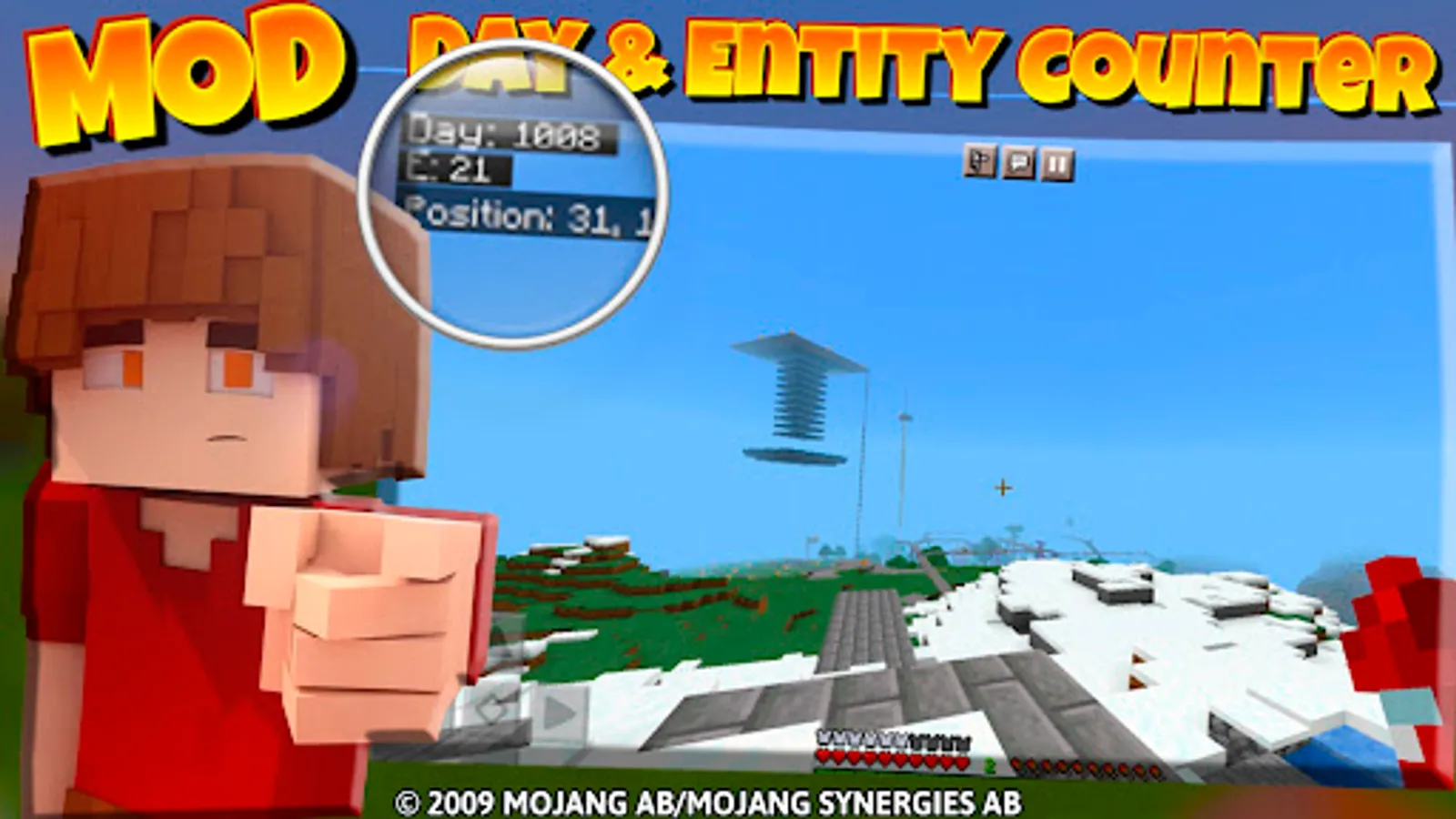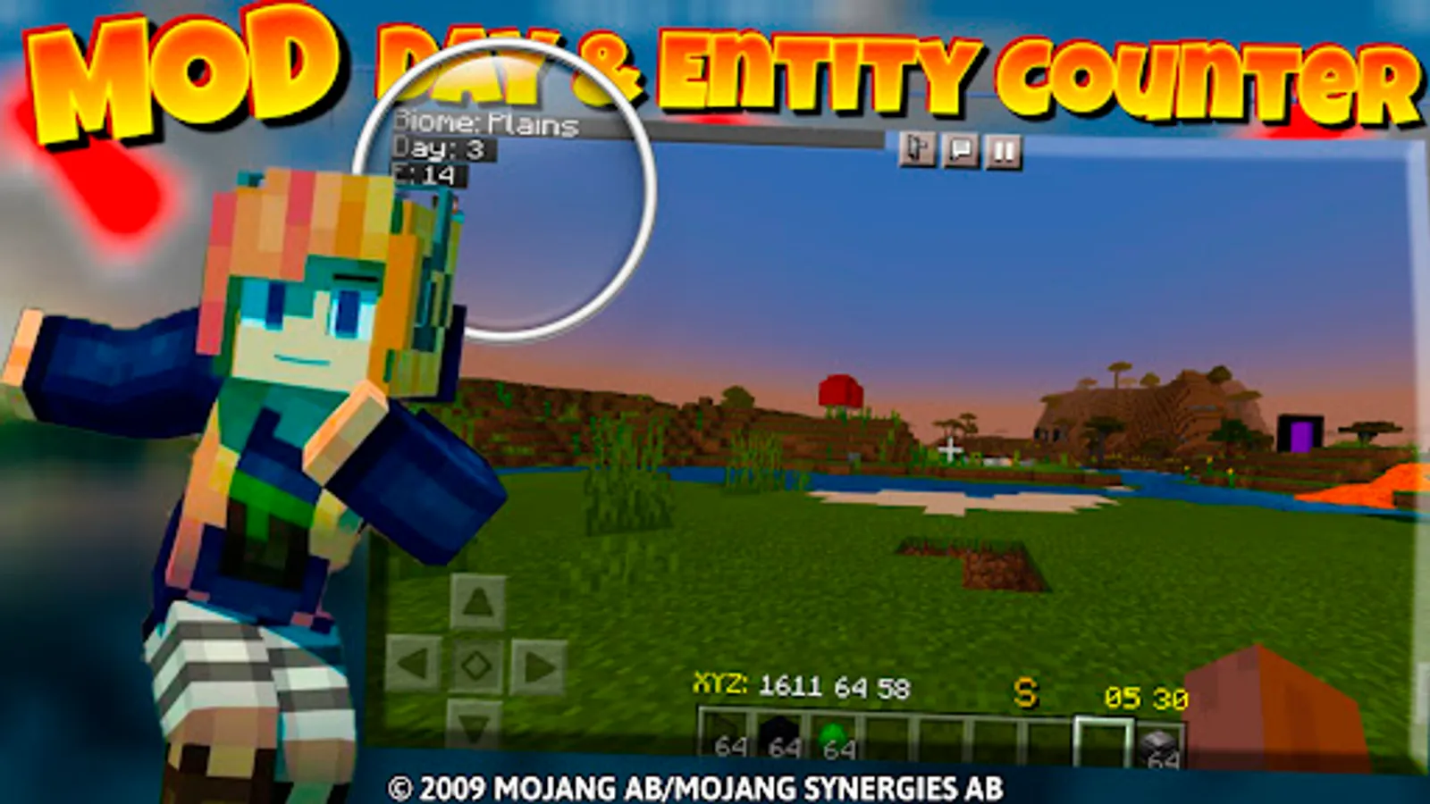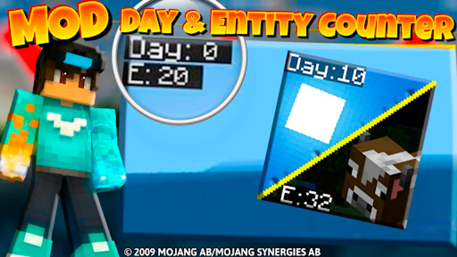 Want to know how many days you have been in the minecraft pixel cubes game? Well, look no further! This resource pack lets you know how many days you have been in the Minecraft pe world and tells you how many entities are around you.