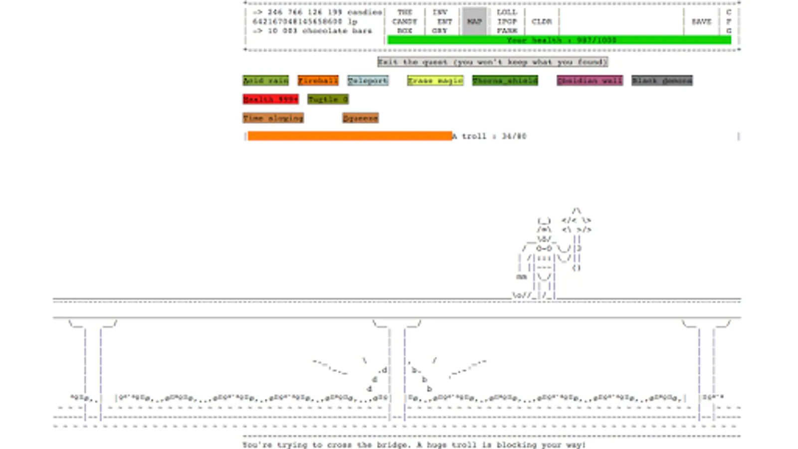 The game revolves around candies, which players receive at a rate of one per second. Gameplay appears very sparse initially, but options appear as the player performs actions.For example, candy can be eaten or used to purchase items.Players can also undertake quests and kill monsters in order to gain candy. By performing quests, the player obtains items which can be accessed in their inventory.