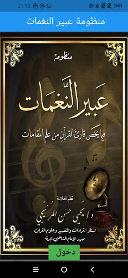 The reciters of the Noble Qur’an used to learn the maqamat at the hands of their sheikhs. Some of them used to learn a maqam, two or three, but they lacked the people of music in this art until Dr. Hassan Yahya al-Marji came and composed this beautiful and easy system to make it easier for the reciters of the Holy Qur’an to read them, so we ask God Almighty to forgive the author of this system and the supervisor of its publication