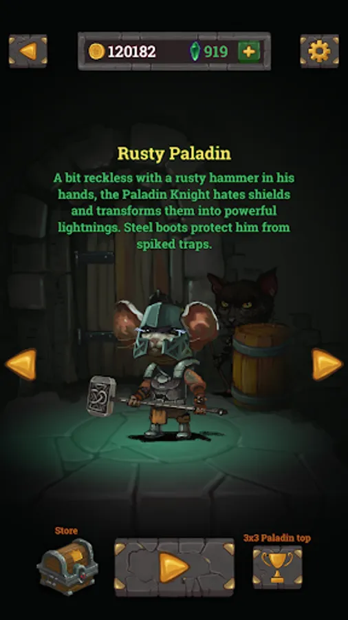 You've got 11 heroes with different tactics to reach as much loot as you can. They are Knight, Mage, Paladin, Thief, Ruiner, Dark Druid, Sir Lancelot, Berserker, Assassin, Plague Doctor and Archer.