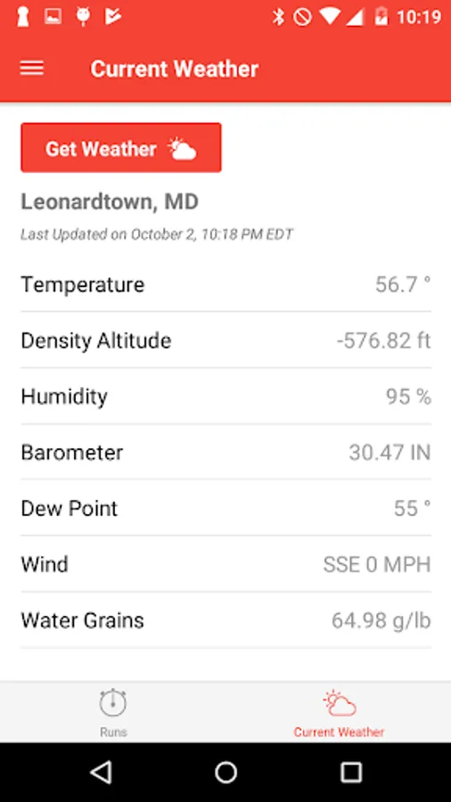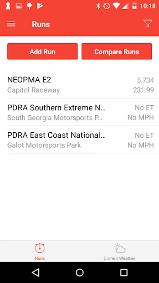 Track and weather conditions are key to your race car’s performance. When adding a run, under the conditions tab, click Get Weather to get the latest weather based on your location. DragTuner uses location services in your device to get your location and query the closest weather station in your area. We return the following fields: temperature, density altitude, humidity, barometer, dew point, wind speed & direction, and water grains. On this same screen, there are also fields for track temperature and notes.