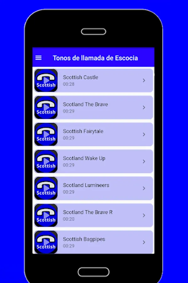 Download it and enjoy the new application of ringtones and sound effects of the Scottish European rhythm. mp3. Ringtones with excellent sound and mp3 format, to play and set as ringtones, alarms, notifications and text messages, song tones.