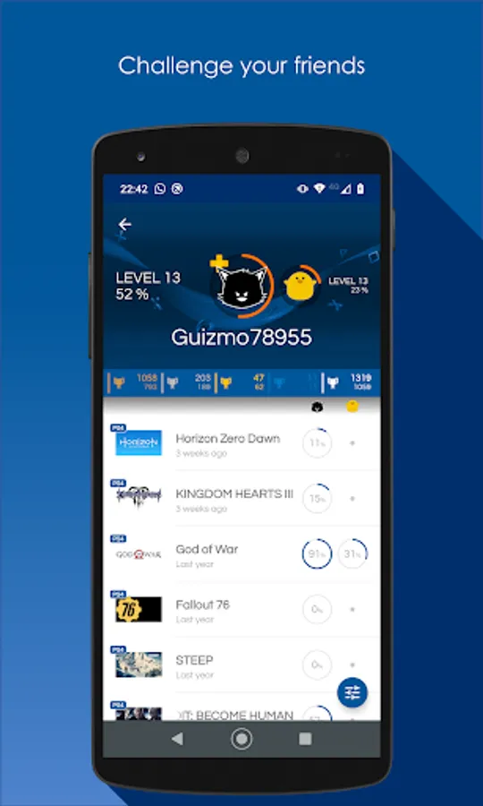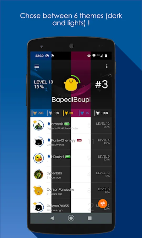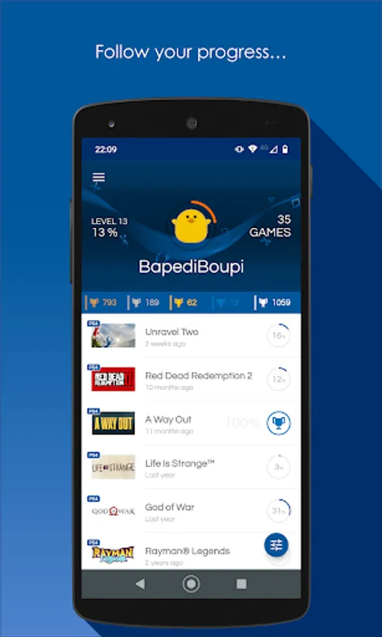 With YaPSNapp you can track your activity on the PlayStation Network and your friends from anywhere. A friendly and intuitive interface allows you to quickly know what happened on the PSN since your last visit.