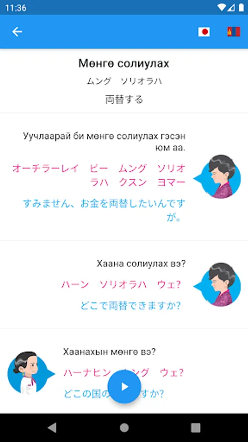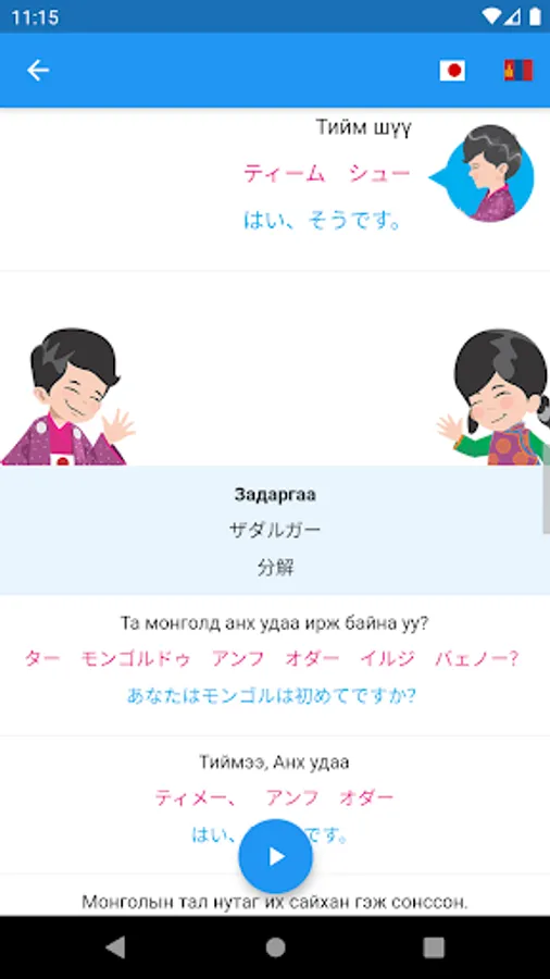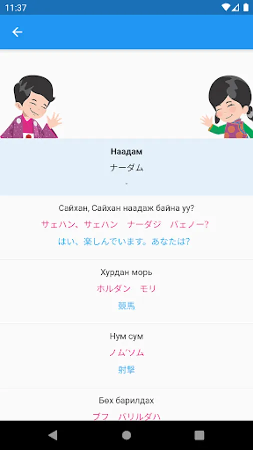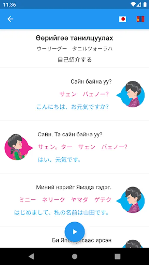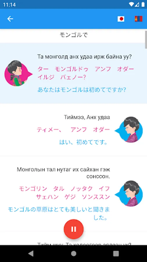 Here are some great conversation apps that will help you to travel and travel in Mongolia. This app is learned by native speakers of Mongolians and Japanese, through the characters of the educational app, the first encounter with Dr. Yamada, Mongolia, meals and cultural activities. This app introduces Mongolian in the story in easy-to-understand Japanese for those who are learning Mongolian for the first time. The appealing point of the app is the fun story structure of native Mongolian Japanese. If you have this app, it is a recommended app that you can get everyday conversation immediately useful to those who are learning Mongolian for the first time. The content of the text is composed of the following eight possible scenes.