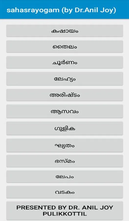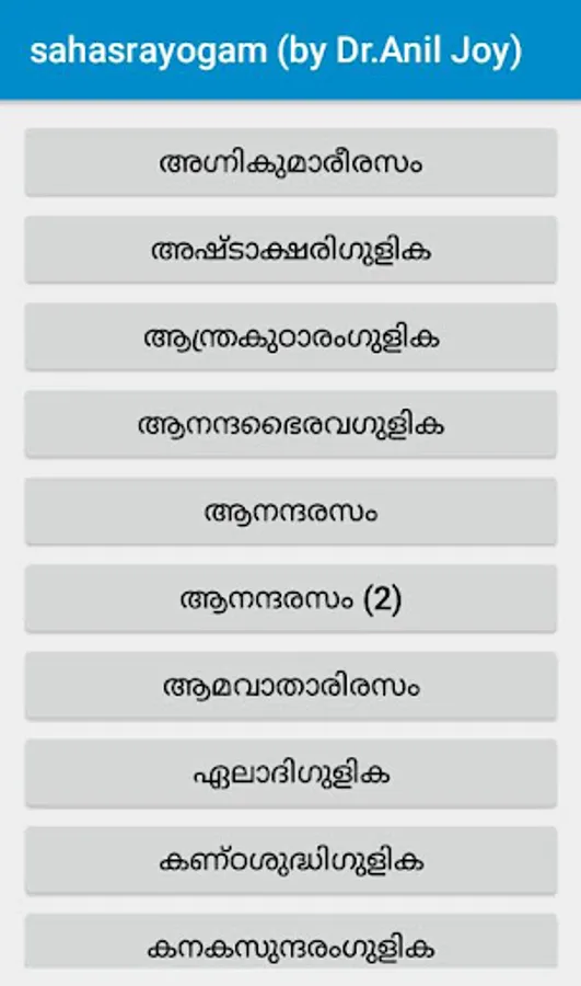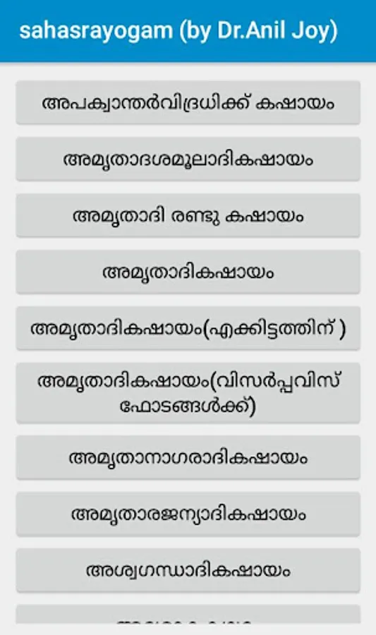This is a digital application for Ayurvedic formulation / yogas. helps the physician to prescribe ayurveda medicine.