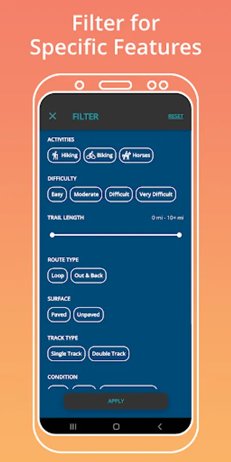 - Filter for specific features: activity, difficulty, length, route type, surface type and more.
