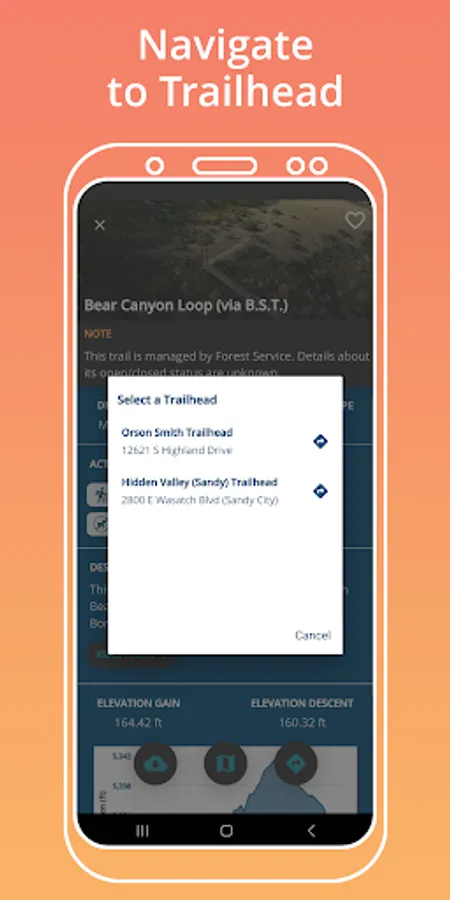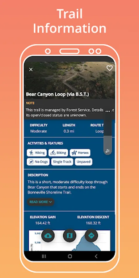 - Detailed trail descriptions, including elevation information and nearby trailheads.