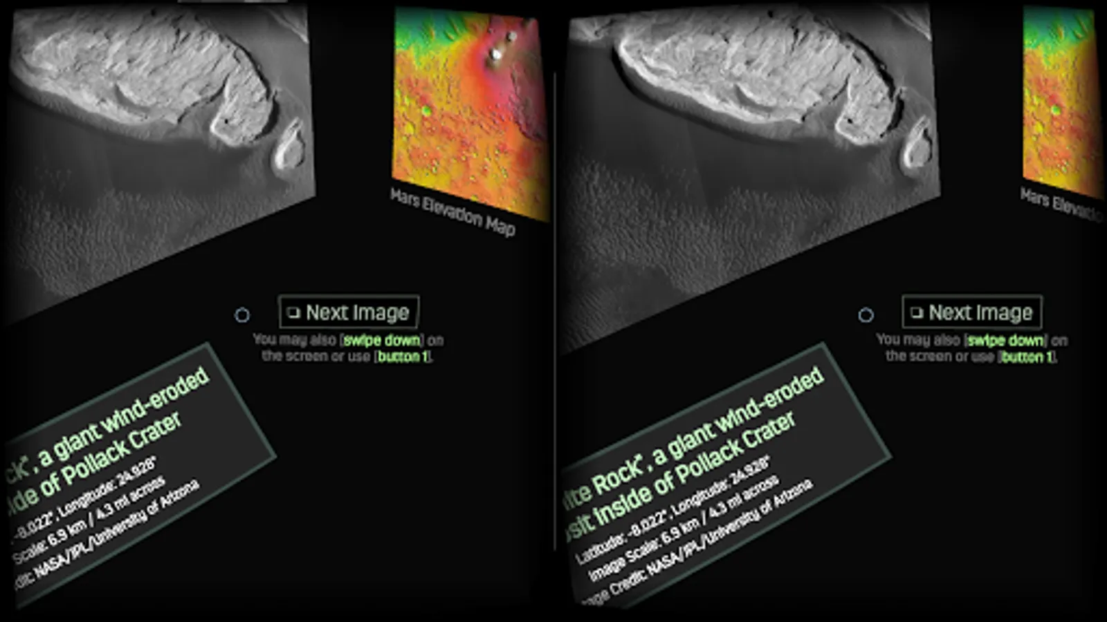 'Mars Is A Real Place' is a musical slideshow of stereoscopic 3D photos of the surface of Mars. Works with Google Cardboard.