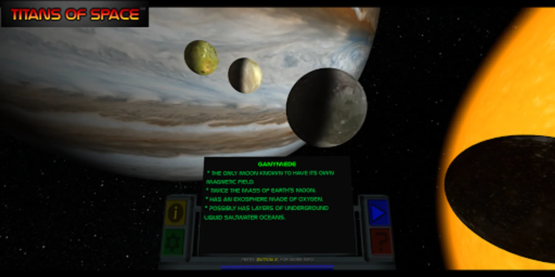 • Catch up on what's new in the Solar System! Your cockpit dashboard will display informational text at most tour stops. There are sometimes additional pages of information with extra detail.