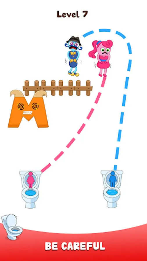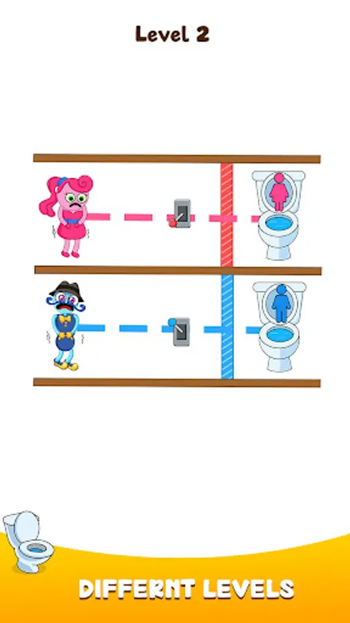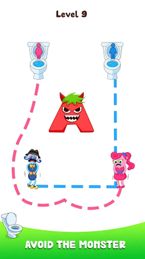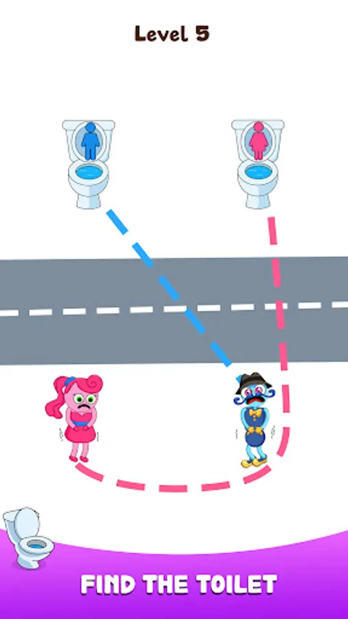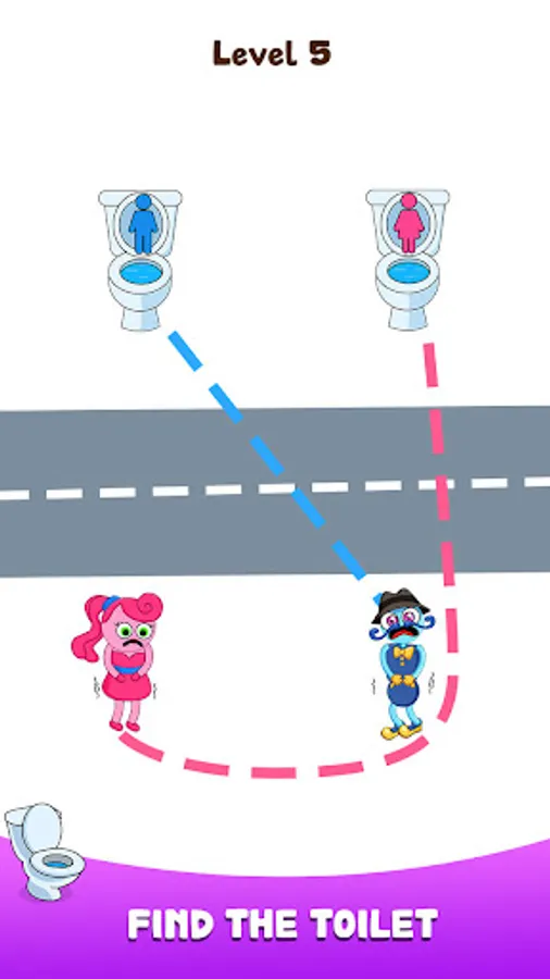 "Path To Toilet: Draw To Line is a fun and challenging maze game. The mission is to guide your favorite characters to find the toilet. You have to overcome troublesome walls and avoid obstacles along the way.