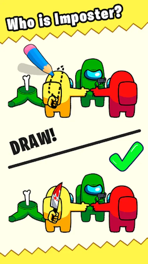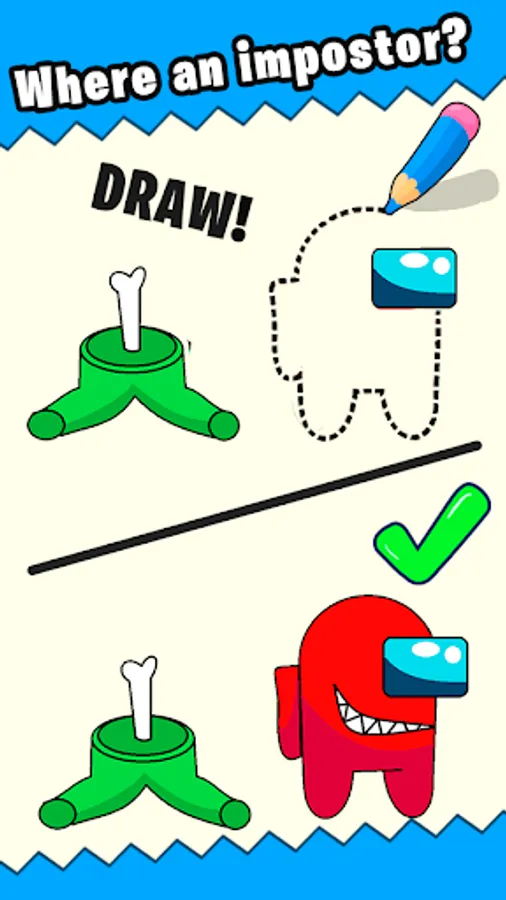 Let download "Draw Puzzle Imposter: Draw one part & Brain Teaser" to experience this drawing puzzle, just by draw imposter.