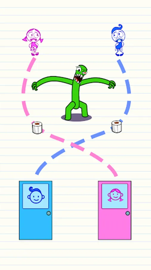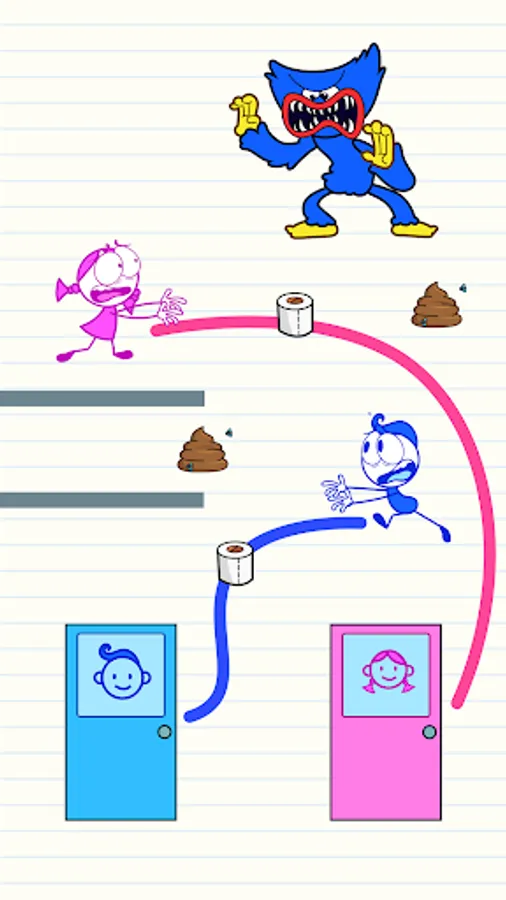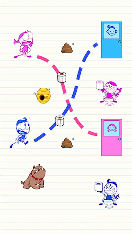 Slide your finger to draw the path that helps your favorite characters to find the toilet in a rush. Can you guide him to the right path and find the toilet on time? Game on.