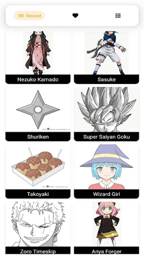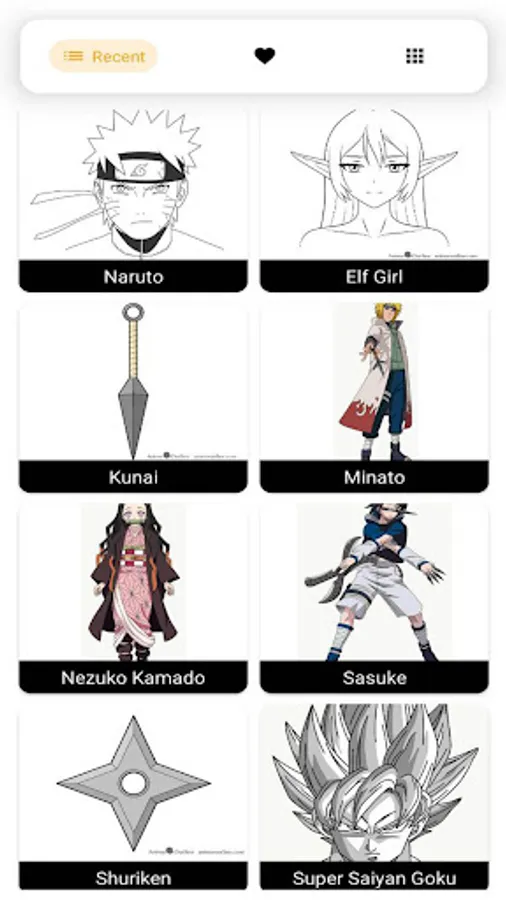 There are so many anime character that can be use as sample to learn drawing, the anime sample will be updated regularly so you can choose various anime sample.