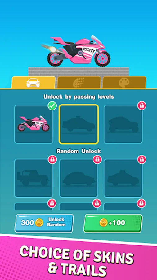 - Choice of cool car skins and trails;