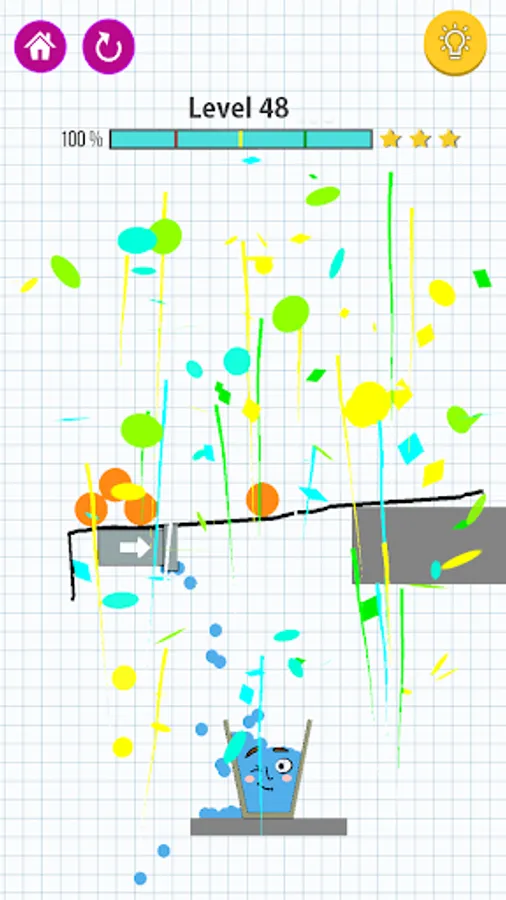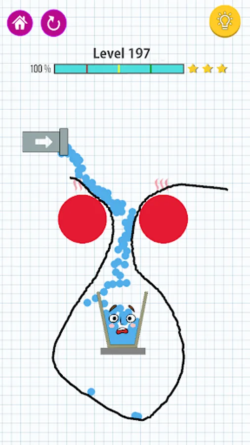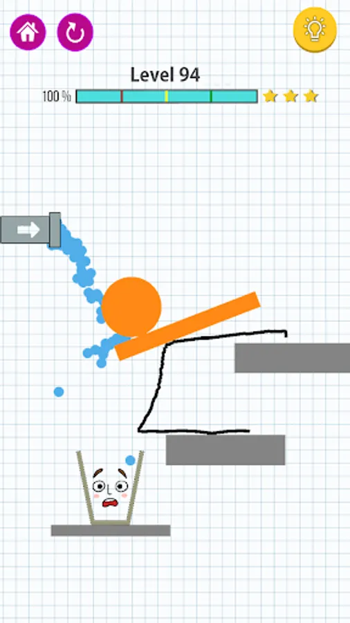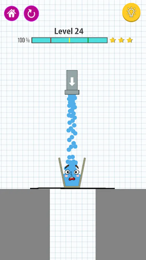 Gameplay of this make water glass happy is very interesting. If you are familiar with draw lines and physics puzzle games? You’ll love to play the dynamic mechanism to make sure that the glass is happy by filling with water. You need to draw lines on screen carefully and lead the falling water drops to the bucket to fill the glass. Seems simple?