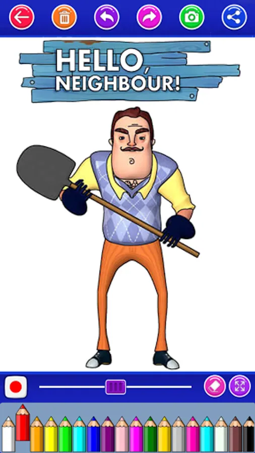 Hallo my neighbor's of the nightmare horror Alpha house Coloring game for The hide and seek will definitely surprise you with all the different cute colors that have to draw over all the coloring pages you like with your favorite horror neighbor 's characters.