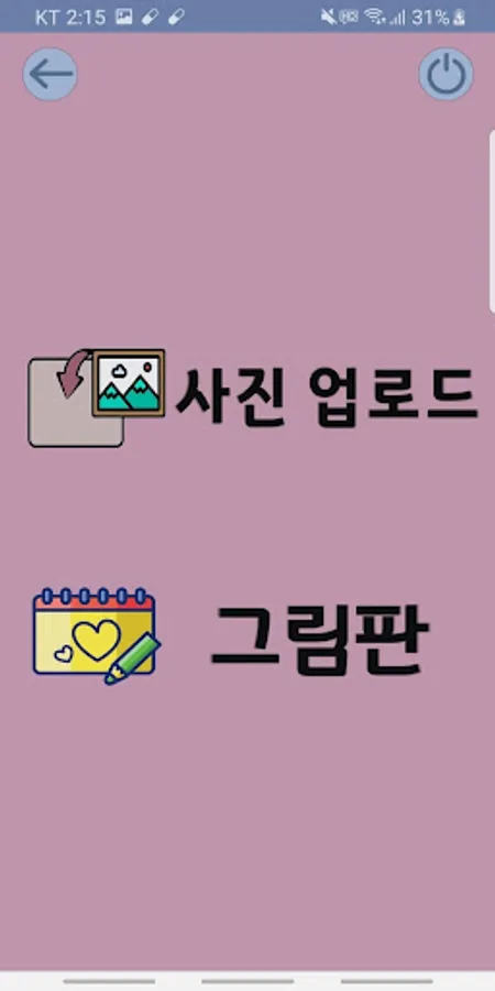 1️⃣ 첫 시작화면을 지나고나서 사진을 업로드할 것인지 그림을 그릴 것인지 선택합니다.