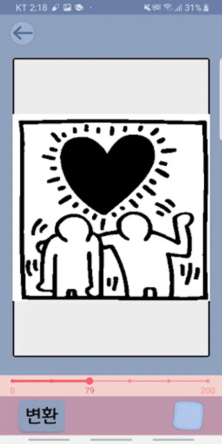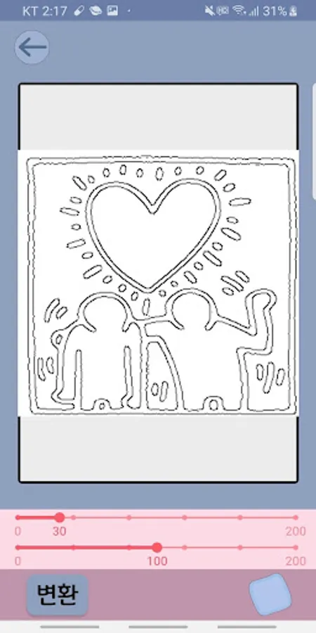 ✔ 트랙바를 이용해 이미지의 선 갯수나 밝기를 원하는 만큼 조절한 다음 "변환"버튼을 누