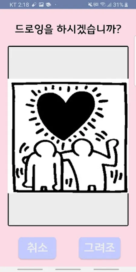 려면 "그려조"버튼을, 첫화면으로 돌아가려면 "취소"버튼을 누릅니다.