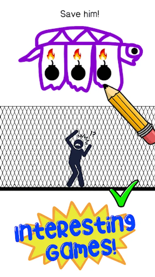You can draw a line to protect the stickman from bullets, zombies, beasts... and many other life-threatening attacks! Learn to draw lines creatively, develop your sense of logic and sharpen your brain!