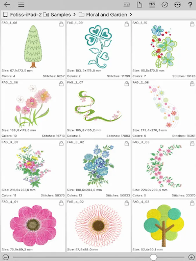 - Add embroidery to other projects by either importing embroidery designs into the app or using the in-app sample designs
