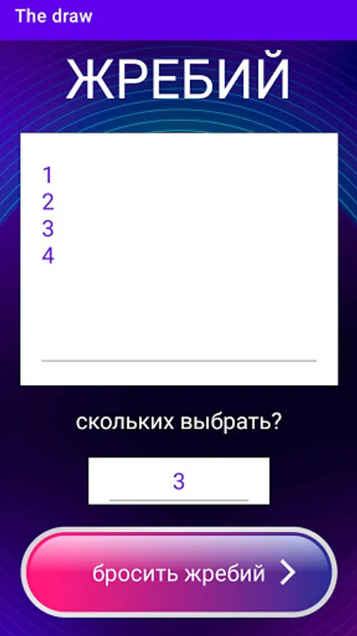 Enter the necessary numbers and the draw will choose a unique one from them
