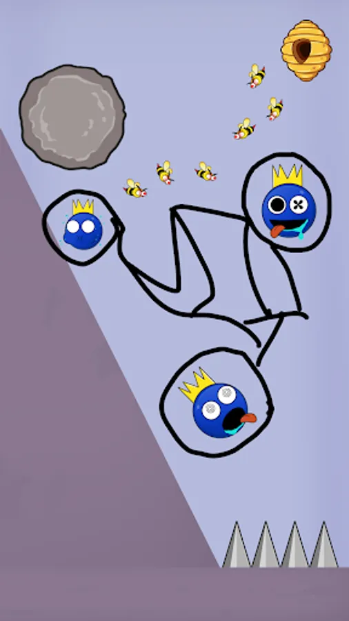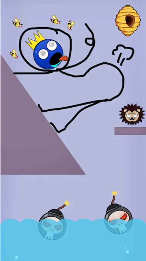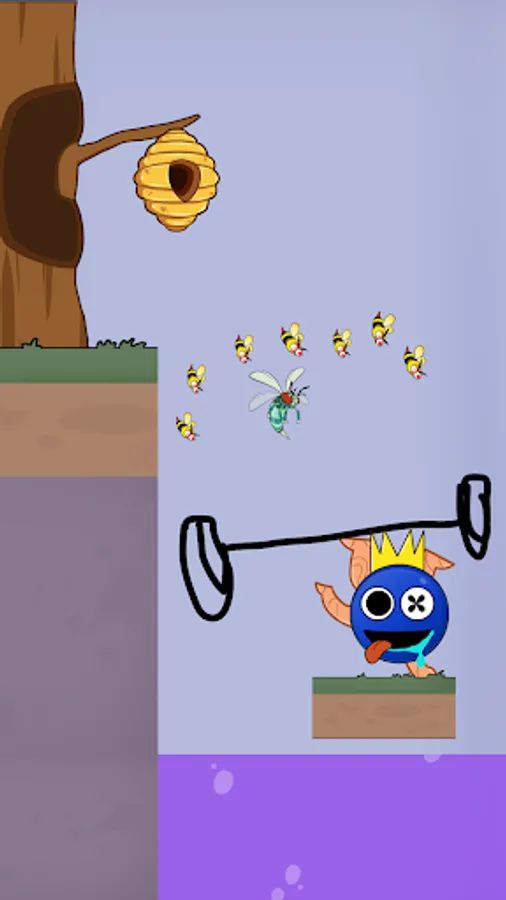 3. You can go on to the following level after saving the rainbow monster. If failing, please try to draw again to Save the Rainbow Blue Monster from bees.