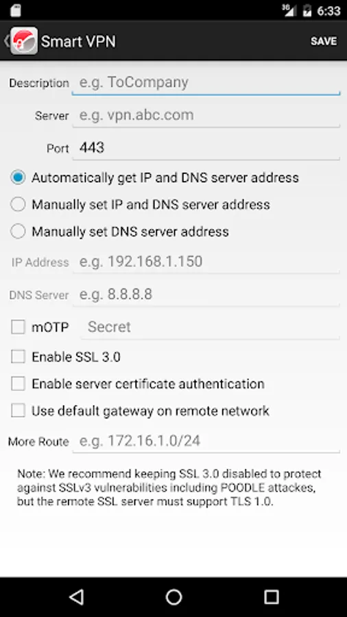 DrayTek Corp. provides SSL VPN connection for the Android smart phone user. You can establish an SSL Tunnel to DrayTek routers with this app.
