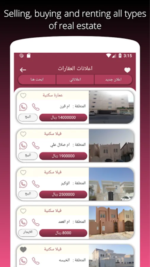 The application also contains a special section for the sale and rental of residential or commercial properties