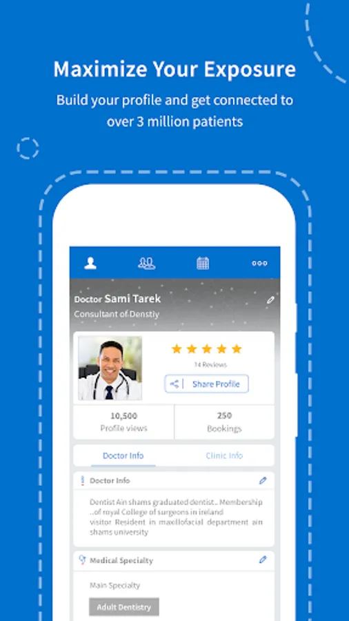 Get more patients, through Vezeeta, the biggest online booking platform for clinics, used by more than 500,000 patients.