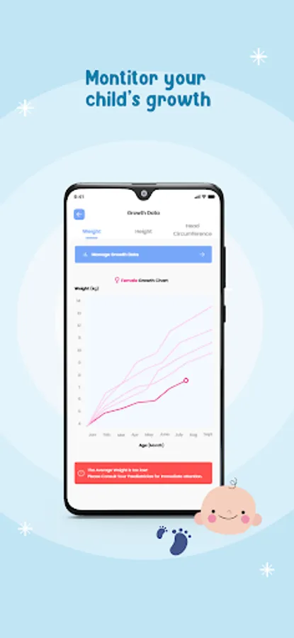 Keep track on your baby's health by monitoring their data on our Childcare app.