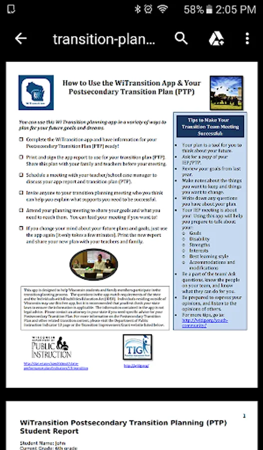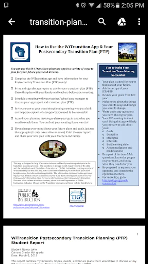 This app was originally designed by the Disability Rights Center of Kansas, a non-profit organization. The app was adapted by the Transition Improvement Grant (TIG) staff and designed to meet transition planning needs in Wisconsin. The TIG is a discretionary grant of the Wisconsin Department of Public Instruction (WDPI), aimed to improve transition planning in Wisconsin. For more information about TIG, please go to www.witig.org