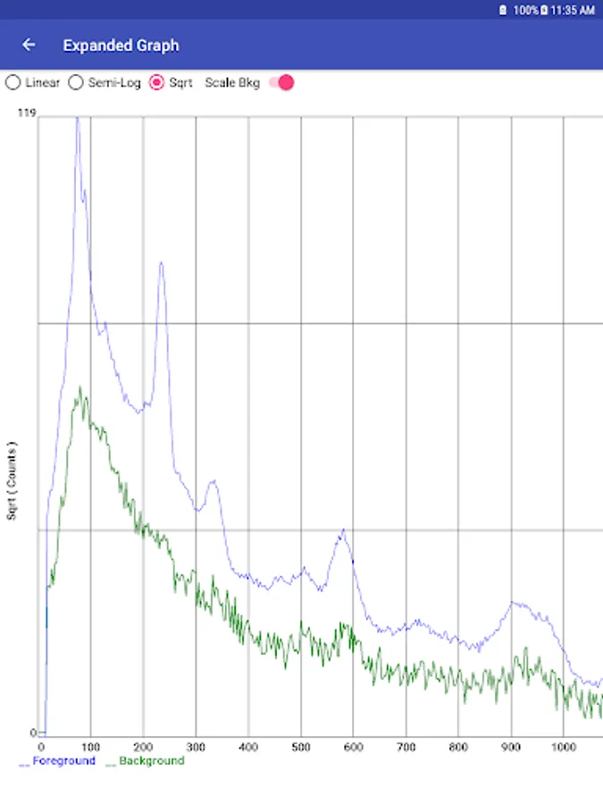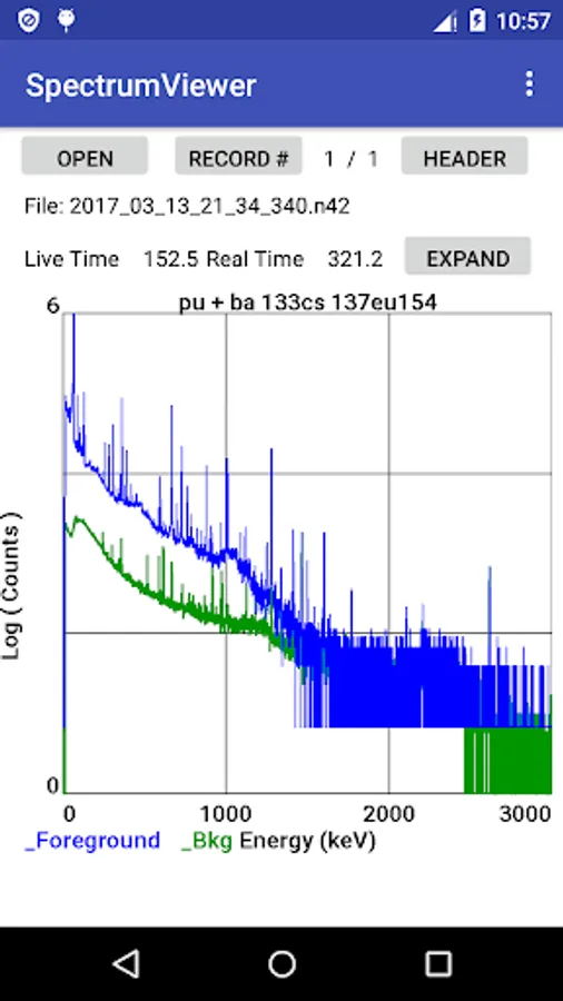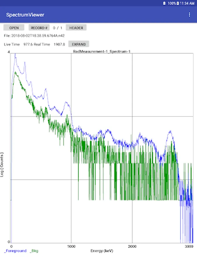 If a background spectrum is contained in the file, it can be plotted as raw, or liveTime normalized to the foreground spectrum.