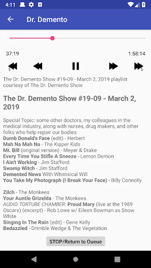 Dr. Demento is the legendary disc jockey who introduced radio listeners to "Weird Al" Yankovic and repopularized such classic artists as Spike Jones, Stan Freberg, Allan Sherman, and Tom Lehrer. The Dr. Demento Show has been running since 1970 and this app lets you listen to more than a thousand episodes ranging from last week all the way back to the dawn of his career. He is known for playing comedy music and dialog from all eras and all styles, with probably the widest variety ever heard on radio in national syndication.