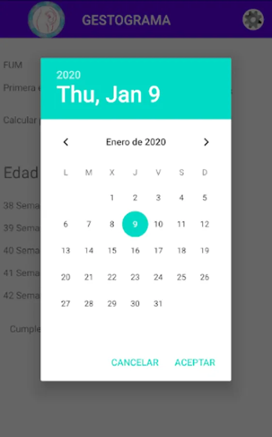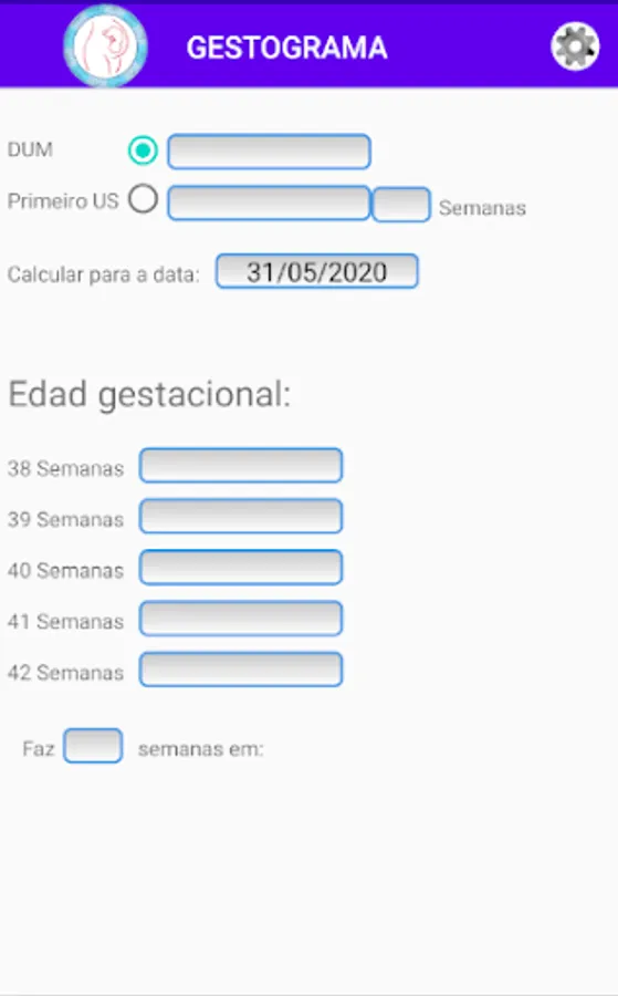 Gestogram: Calculates the weeks of pregnancy from the last menstruation or based on the first ultrasound.