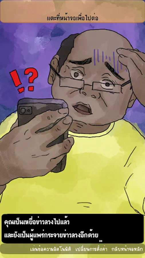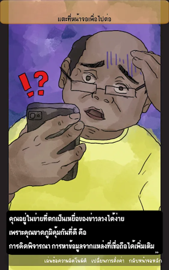 Stop, Think, Ask, Do is a game designed for learning media literacy skills. Players will test their media literacy skills in everyday situations. Whether it's a family event information from friends Mystery from a mysterious person The player has to decide whether to believe or not to believe. will ask for more information Or will you continue to share it with others?