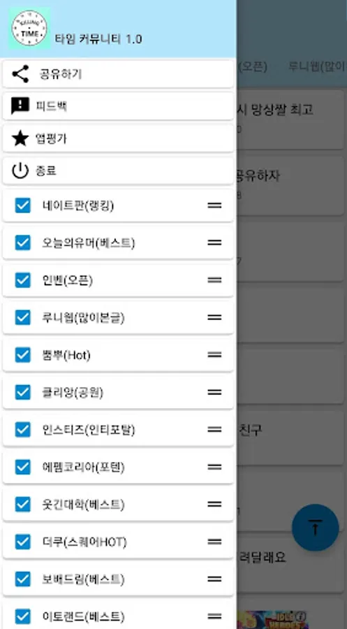 인기 게시판의 글을 한번에 볼 수 있습니다.