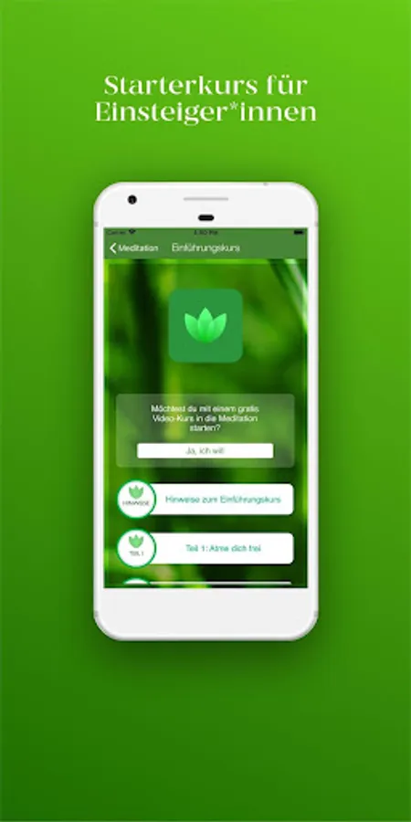 With free basic course: The app gives you a proven Introduction to Meditation - with body scan, breathing exercise and the KEY to freedom of thought. The ebook "FAQ meditation" and various videos you find all answers to your questions about the meditation.