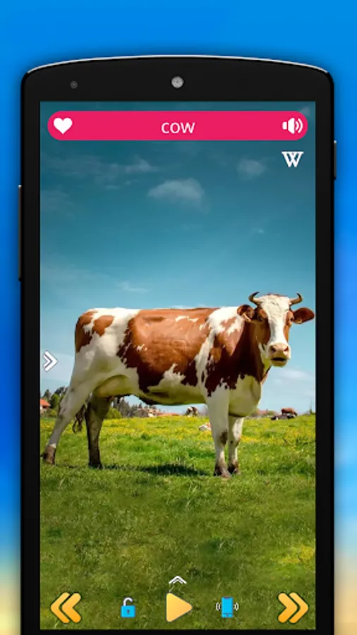 The Animal Sounds application contains the names of the animals in 40 languages, so everyone around the world can learn the names and animal sounds. The language change option makes it easier to start learning foreign languages (animal flashcards).